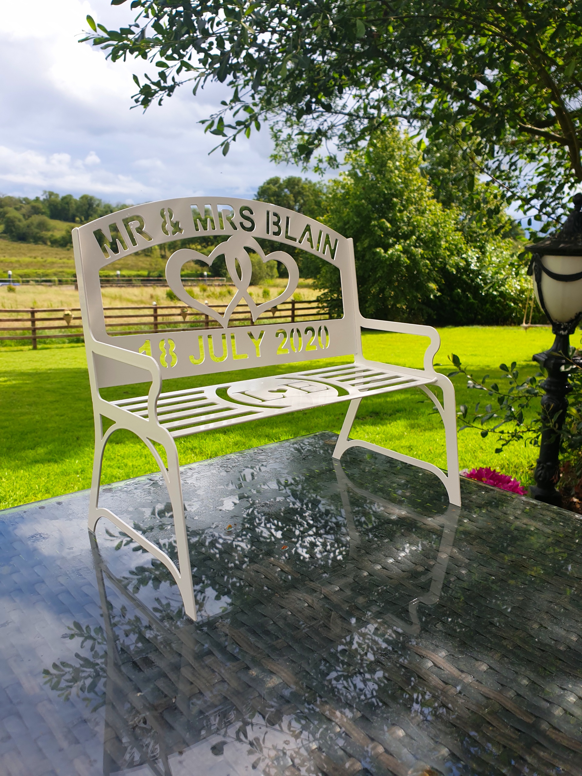 Our charming mini benches make wonderful keepsakes for weddings, special events, or group gifts. Available in two sizes 1ft and 2ft you can personalise any design as long as it fits within the backpiece. Plus, we can paint them in any colour you choose to match your theme perfectly.